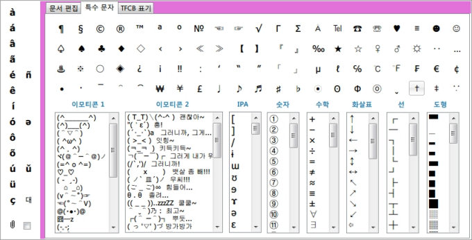 여러 특수 문자가 새로 추가되고 위치가 바뀌었습니다. 보관함의 기능도 개선되었습니다.